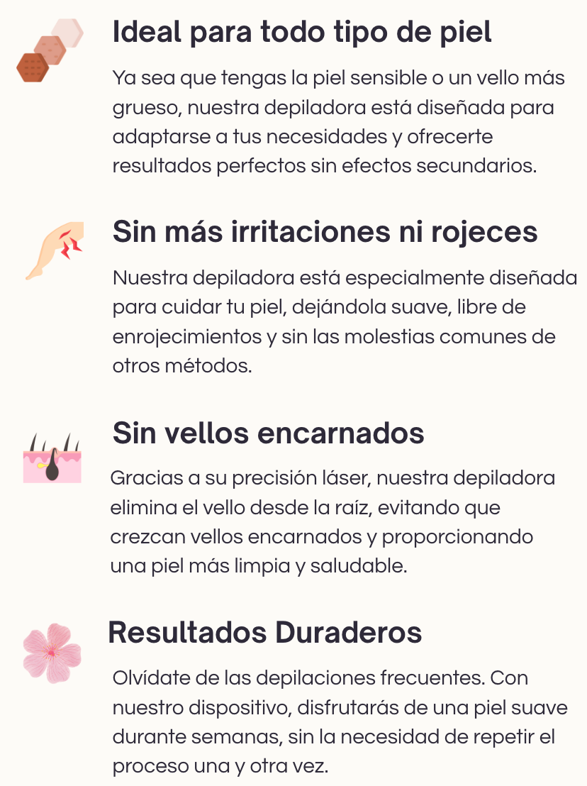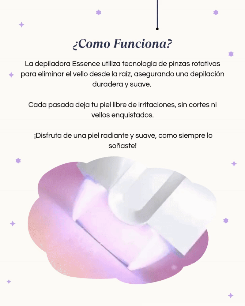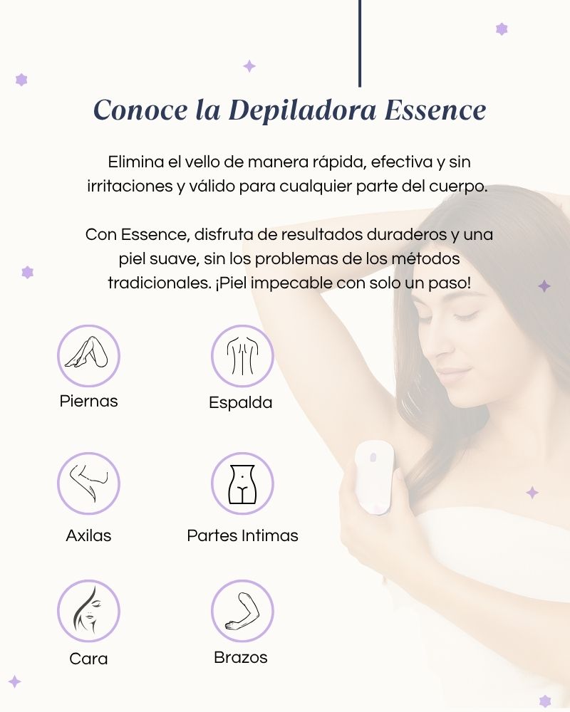 Mi rutina de depilación siempre era un rollo: pasaba horas depilándome y los resultados no eran geniales. Con Essence, en 15 minutos tengo la piel suave y sin dolor. ¡Una maravilla! Nunca había sido tan fácil.